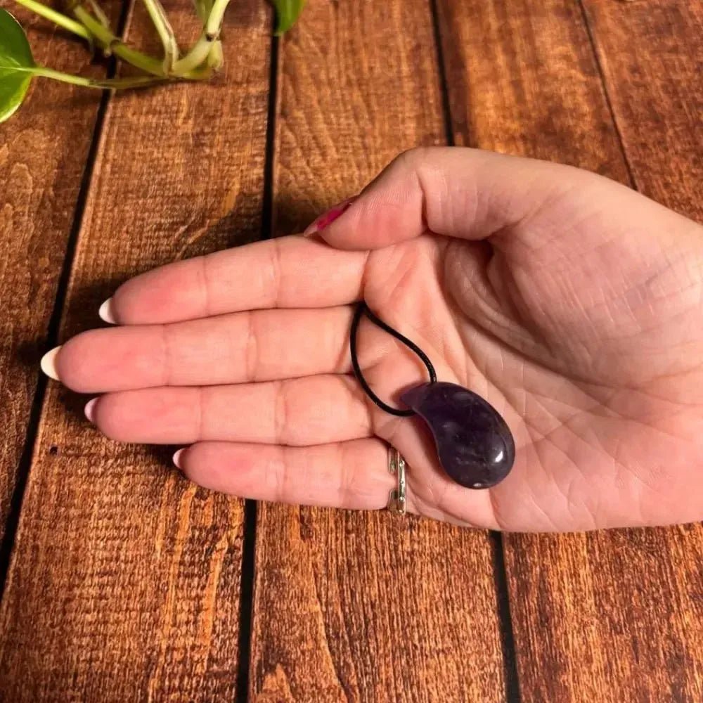 Formato: Colgante en forma de gota (2-3 cm aprox.) con cordón encerado negro ajustable