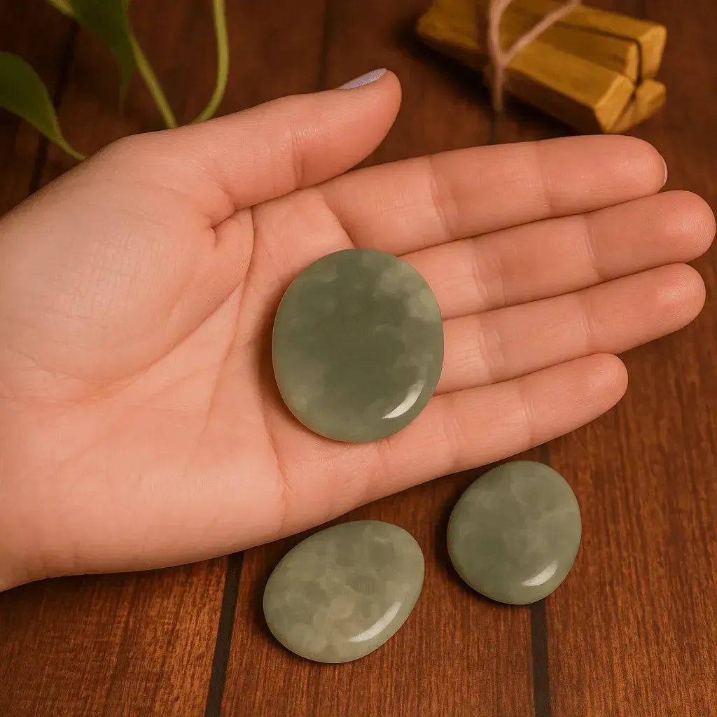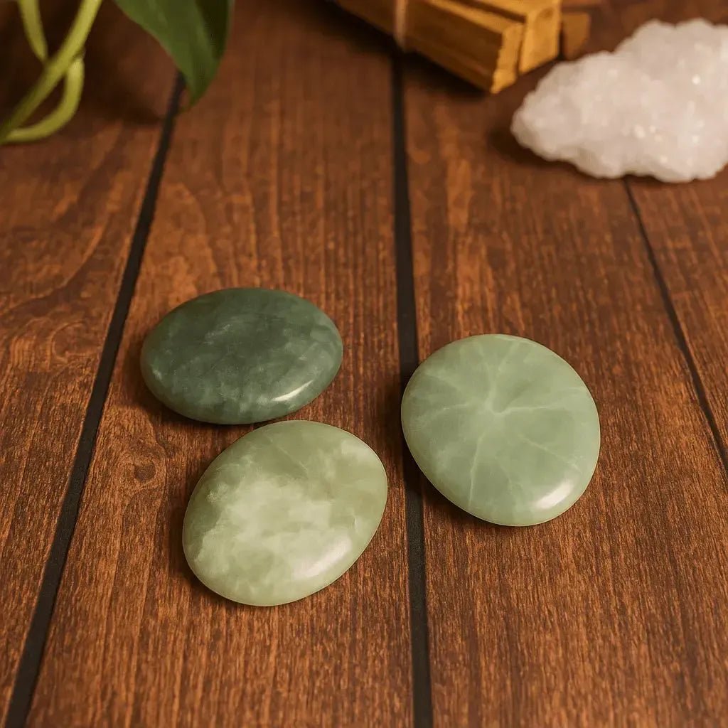 Este jade de China en formato plano y pulido reúne lo mejor de su tradición energética: serenidad firme, claridad moral y arraigo emocional. Es una piedra pensada para quienes necesitan mantenerse fieles a sí mismos en medio de exigencias externas. Ideal para llevar en el bolsillo, como amuleto protector o en prácticas de decisión y liderazgo consciente.